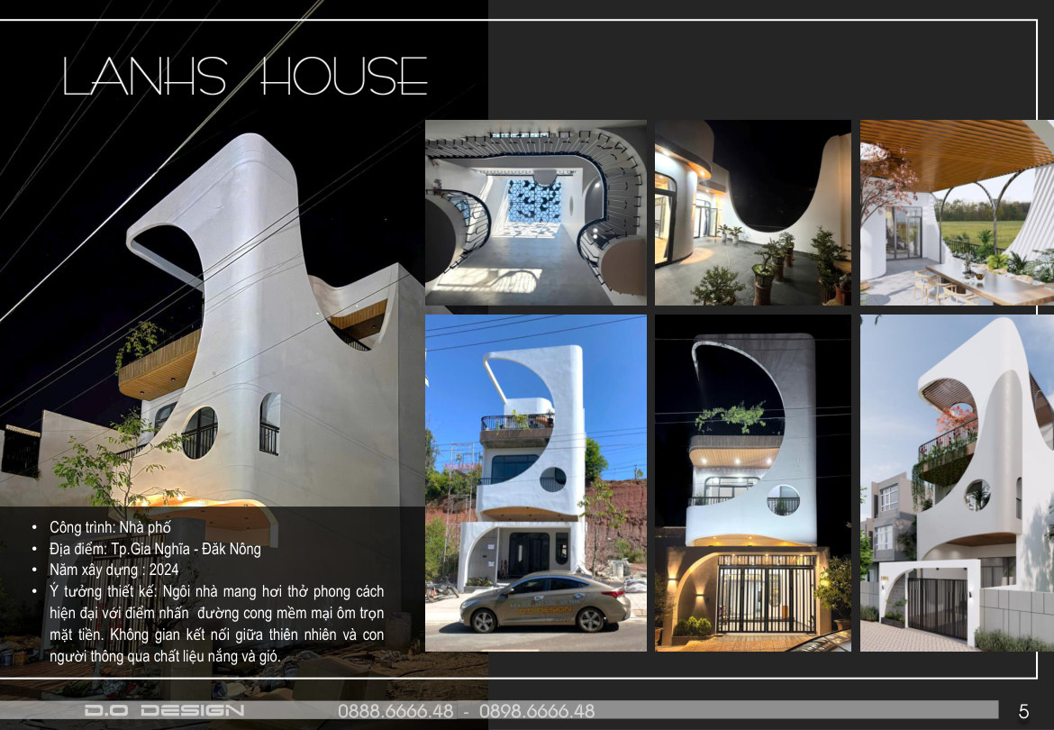 Ngôi nhà mang hơi thở hiện đại với điểm nhấn đường cong mềm mại ôm trọn mặt tiền, kết nối thiên nhiên và con người qua nắng, gió và khoảng mở.
